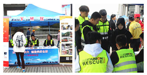 同时,在广场一侧设立了防灾减灾知识问答区和咨询台,各区、县(市)减灾委办以及我校贸易系志愿者们为市民现场讲解防灾减灾政策知识,并分发了宣传资料。