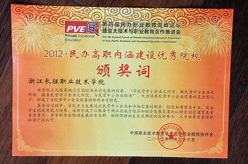 我院荣获“2012民办高职内涵建设优秀院校”称号