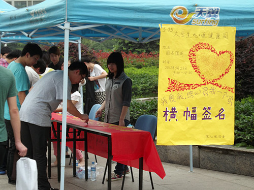 此次活动以“我爱我,给心灵找一个家”为主题开展了横幅签名,心理测试,心情贴贴、心理讲座,心理电影展播等一系列丰富多彩的活动。活动中同学们都表现出高度的热忱,积极参与。大多数同学都表示通过参加这次活动,能够了解到自己目前的心理状况,用更为阳光的心态来面对可能出现的问题,并且学到了更为合适的解决问题的方法。同时,请来了姬磊老师为同学们就“大学生恋爱”和“珍爱生命”两个方面进行了心理健康知识专题讲座,让我校大学生能够更好的面对自己的大学生活。