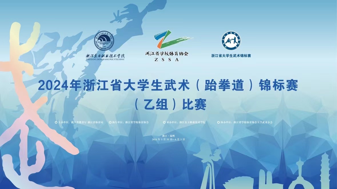 近日,浙江省大学生武术(跆拳道)锦标赛(乙组)比赛在浙江东方职业技术学院(滨海校区)顺利落下帷幕,我校武术代表队斩获个人金牌5枚、铜牌1枚,并获女子团体第二名,男子团体第三名,叶驰同学被评为优秀运动员,薛佳妮老师被评为优秀教练员。