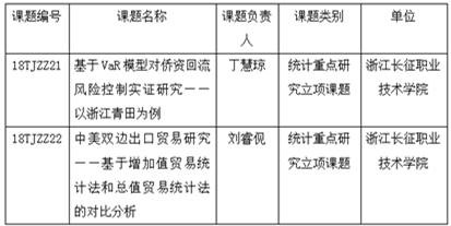 据浙江省统计局浙统函[2018]121号《关于公布2018年统计研究课题和统计科学研究基地课题立项计划的通知》,确定立项课题60项,其中重大课题3项、重点课题28项、青年课题17项、基地课题12项。我校丁慧琼副教授、刘睿伣副教授获得2018年全省统计重点研究立项课题。具体如下: