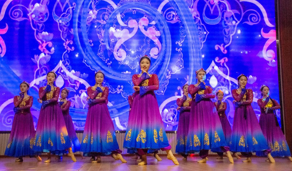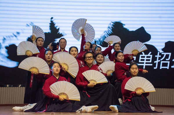 演出在开场舞《灯火里的中国》中拉开序幕,紧接着,欢快喜庆的东北秧歌、婀娜多姿的新疆舞、热情奔放的蒙族舞、韵味十足的古典舞等纷纷上演、高潮迭起,师生们用积极向上的姿态表达了对祖国和新年的美好憧憬,向大家充分展示了人文与教育学院师生的别样风采。