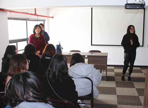 接着由公司的总监——我院计算机系的往届毕业生——金玲玲以及商务英语专业的实习生——林伊洁,分享了自己在该公司的成长之路。金总监讲述了她是如何与念诚结缘,如何由一名普通的销售人员一步步走到今天的总监的历程。金总监说,若想在职场中立足,必须要有勤奋刻苦的精神,时刻提升自身的能力,奋发向前,切忌眼高手低,目空一切。她以自身的经验,为我们展示了现代企业所需要的人才。商务英语专业14级学生林伊洁分享了她实习的经历和心得,并用自身经历鼓励学弟学妹。