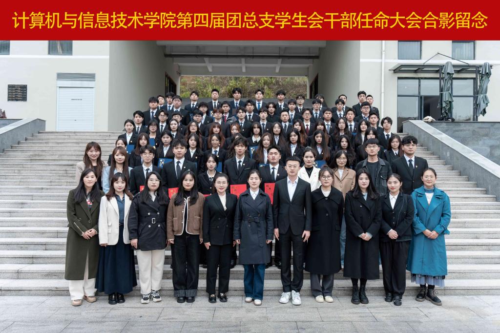 为贯彻落实习近平总书记关于青年工作的重要思想,深化团学组织改革、强化团学组织示范引领作用。近日,计算机与信息技术学院在第二报告厅举行第四届团总支学生会干部任命大会。学院党总支书记徐静、副书记刘帅、学工办副主任华春媛、全体辅导员、学生代表共计200余人参加此次大会。会议由学工办副主任林美娜主持。