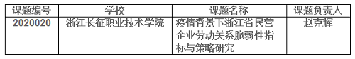 一、2020年浙江省人力资源和社会保障科学研究课题: