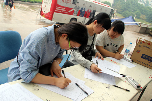 早上10点半,献血车刚刚停驻在图书馆前,就吸引了不少同学前来报名咨询。活动不到半个小时,献血的同学已经排成了长长的队伍。大家积极的填表格,一个接一个的检测血液。活动现场人群涌动,填表、化验、等候、献血,所有流程都井然有序地开展着。等候的同学们还向献血站工作人员询问关于献血的有关事项和献血小知识,对无偿献血有了更为深刻的了解,起到普及献血知识的作用。截至下午5点,共有122人参加献血,献血总量达35800CC。