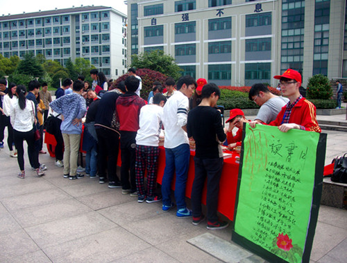 在开幕式上,同学们观看了“立身要以立学为本,立学以读书为本”为主题的展览,同时,还参与了修理图书馆破损书本的志愿活动,同学们热情高涨,一起动手加入到修书等志愿活动之中,并宣誓签名,做一名爱读书、珍惜书的文明读者。(院团委供稿)