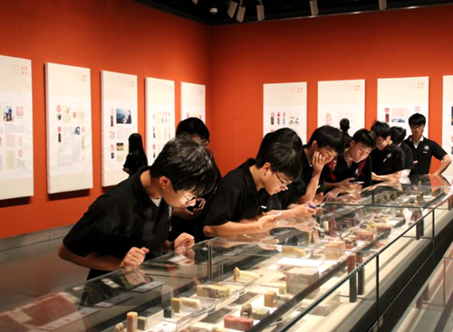 展览内容主要由篆刻、书法和素描三大部分组成, 外加印章、紫砂陶艺作品、李岚清同志著作、“老童生书记”匾额等重要实物。展览以大量的精美的篆刻工具,大气磅礴的书法作品,向参观者展示了中国传统艺术的精髓所在,让同学们更加深入地体会了中华传统文化艺术的魅力。