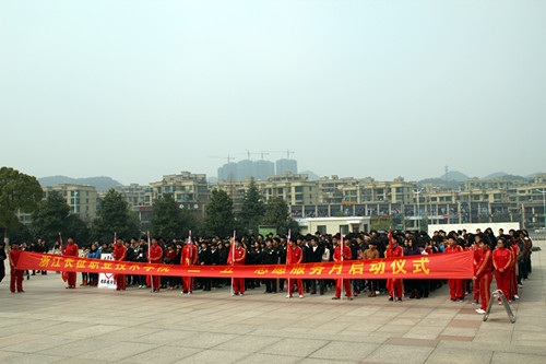 学院团委副书记戴丽娟老师首先介绍了出席本次启动仪式的各系团总支书记。随后是团委书记陶元老师向志愿者代表进行授旗。学生代表庄重宣誓,将恪守志愿者的准则,为人民服务。最后,在刘东老师的号召下,志愿者服务月正式开始。各志愿者小分队随后开展了一系列的活动。